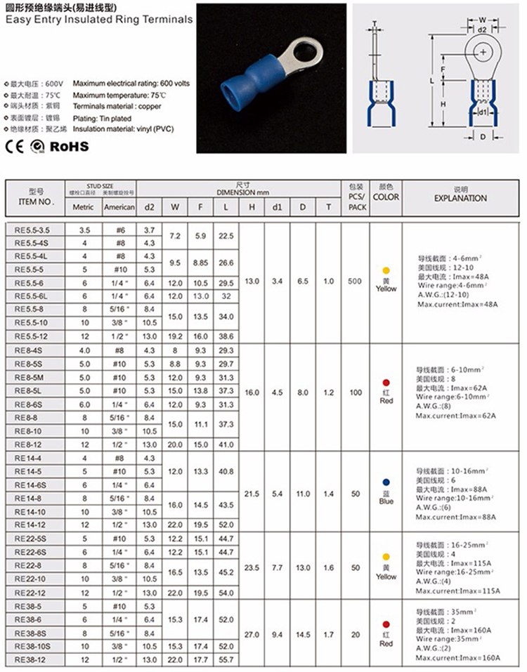 圓形預絕緣接線端子(易進線型)